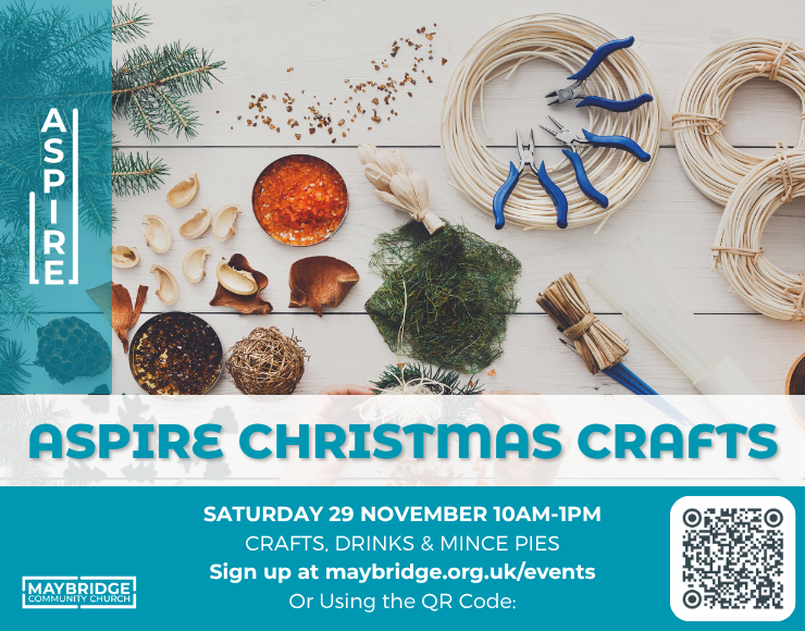 Join the Aspire women’s group for Christmas Crafts on Saturday 30th November. The cost is £2 to sign up and then £2 per craft on the day to make cards and a range of different tree decorations. Sign up by Wednesday 27th November. Ladies may wish to bring their own home craft project to get on with instead. We look forward to seeing you!